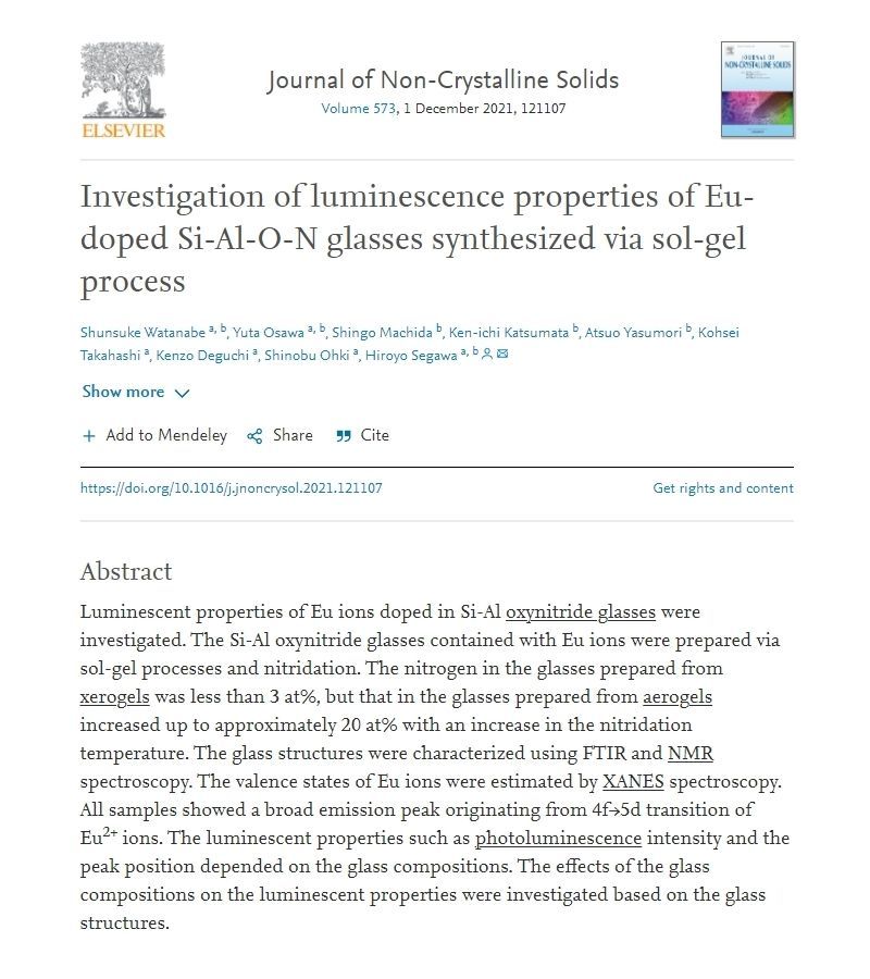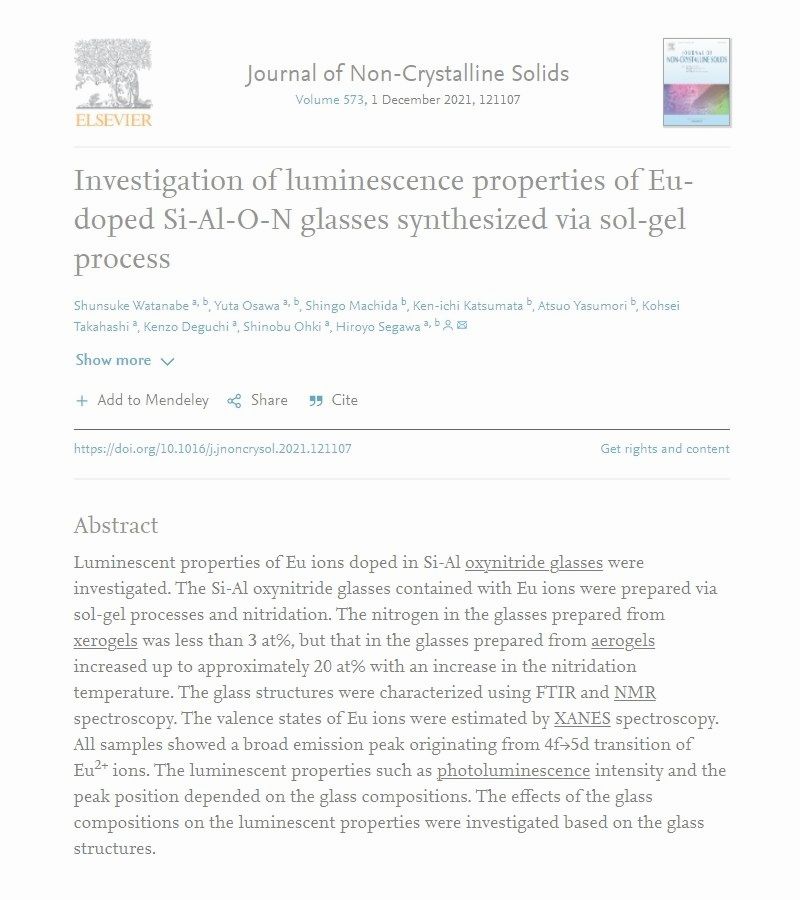 Watanabe et al., J. Non-Cryst. Solids, 573 (2021) 121107.