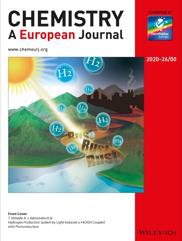 鉄錆の一種であるオキシ水酸化鉄(FeOOH)を用いたメタノール水溶液からの光水素生成に関する研究で、論文誌の表紙に選出されました。