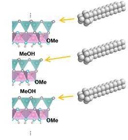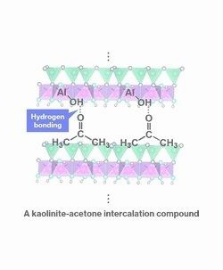 町田先生の研究成果で、これまでには陽イオンを交換できなかったカオリナイトの層表面を特殊な反応中間体を用いて有機修飾することにより、世界で初めて陽イオン交換性カオリナイトを合成することに成功しました。早稲田大学の菅原先生との共同研究です。