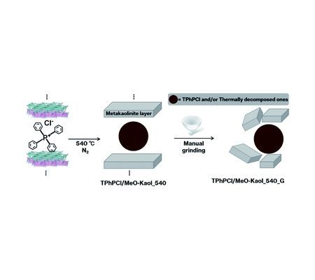 町田先生の研究成果で早稲田大学の菅原先生との共同研究です。カオリナイトのインターカレーション反応における新たな反応中間体を開発することで、これまでにはカオリナイトにインターカレーションできなかった嵩高い有機塩をインターカレートすることができました。