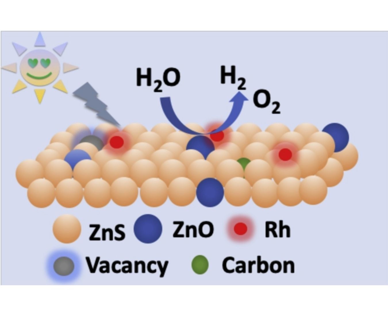 JSPS外国人特別研究員Khan氏の研究成果、炭素をドープしたZnS-ZnOヘテロ構造体にRhを担持すると、太陽光を利用して水から水素を取り出せることを示した内容です。