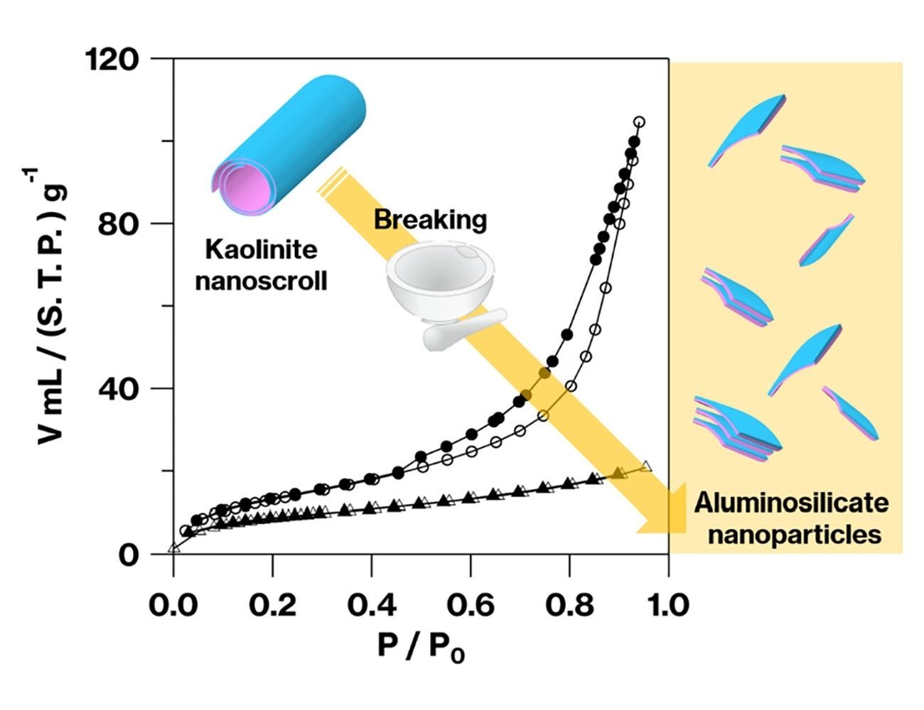 町田先生の研究成果で、これまでには報告例がなかった、層間が拡大したメタカオリナイトの合成に成功した内容です。