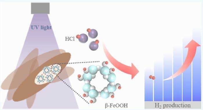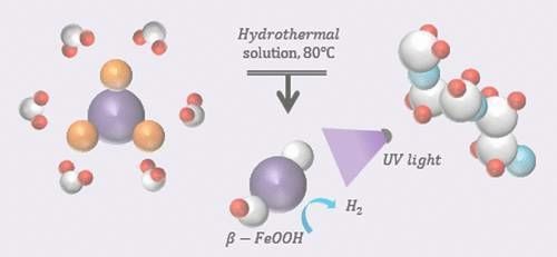 韓国のHong先生との共同研究成果で、水熱合成法を用いて合成したβ-FeOOHの光機能特性を調査し、光フェントン反応に基づいて光還元プロセスが進行することでβ-FeOOHはUV照射下で水素生成することを確認しました。