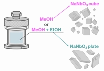 町田先生と勝又先生の研究成果で、ニオブ酸ナトリウムの水熱合成やソルボサーマル合成において通常ではキューブ状の粒子が生成することに対し、溶媒を適切に変更することによって板状粒子を得ることに成功しました。東京農工大学の中田先生、臼杵先生、VISTECの小川先生と共同研究とさせて頂いた、国際共著論文です。また、この研究はNEDOの助成事業を受けたものです。