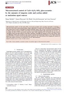 町田先生の研究成果で、通常ではガラス原料は溶かしてしまえば同じという常識に対し、ガラス原料の中でも核形成剤源の粒径を変更することによって、得られる結晶組織のサイズを変更した研究です。国際ガラス年を記念する特別号に掲載されました。